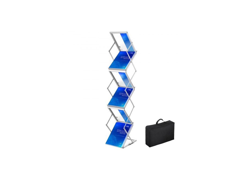 VEVOR stojan na literaturu, 6 kapes, vyskakovací hliníkový stojan na časopisy, lehký stojan na katalog s taškou do obývacího pokoje, hotelu, veletrhu, výstavy, kancelářeStojan na literaturu se 6 kapsami
