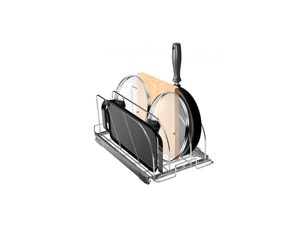 VEVOR Stojan na pánve a hrnce, rozšiřitelný výsuvný organizér pod skříňku, organizér na plechy na pečení, nastavitelné drátěné děliče, ocelový držák víka do kuchyňské linky a spíže.Funguje s pánvemi jakékoli velikosti