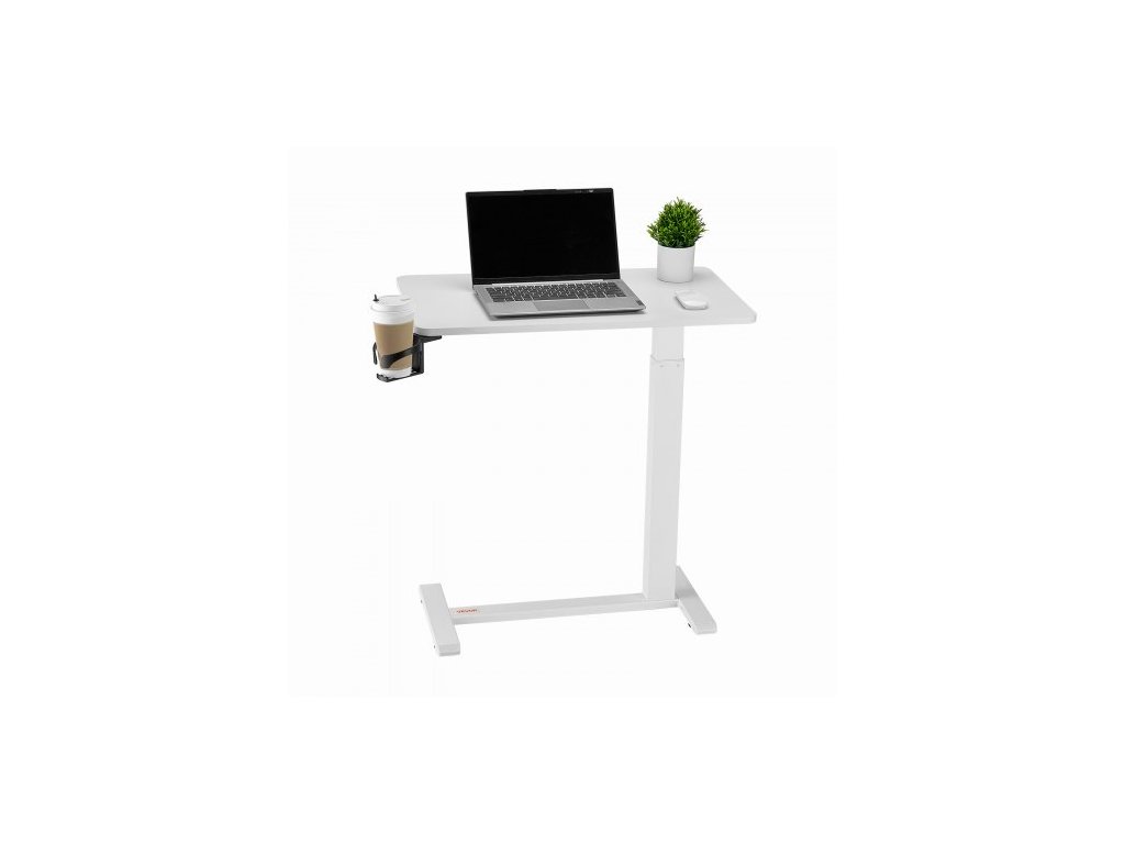 VEVOR stolek nad postel, mobilní odkládací stolek se 4 skrytými kolečky, výškově nastavitelný pojízdný stůl na notebook s držákem na nápoje, přenosný stůl nad postel z dřevotřísky pro domácnost, kancelář, pracovnu, bílýNastavitelný nadložní stůl