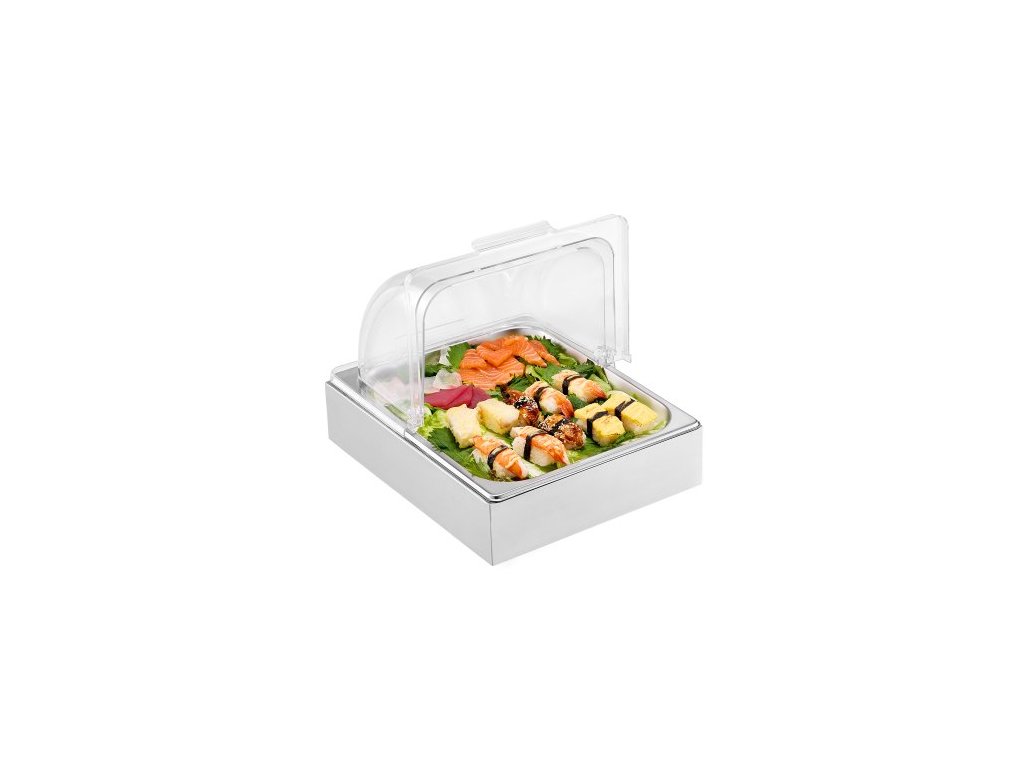 VEVOR Stolní servírovací tác na jídlo, 1 x 1/2 pánev, nerezový servírovací tác na jídlo, stojan na koření na bufet s průhledným víkem a táckem na led, pro restauraci, hotel, kuchyň, pártyChlazený kořenící servírovací stojan pro vystavení jídla