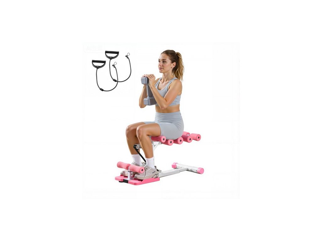 VEVOR stroj na hluboké dřepy, nastavitelný posilovací stroj na hýždě se 3 vysoce silnými odporovými pásy, skládací posilovací stroj na nohy a hýždě, posilovací zařízení na kliky v domácí posilovně, růžová + bíláPohodlné válečky