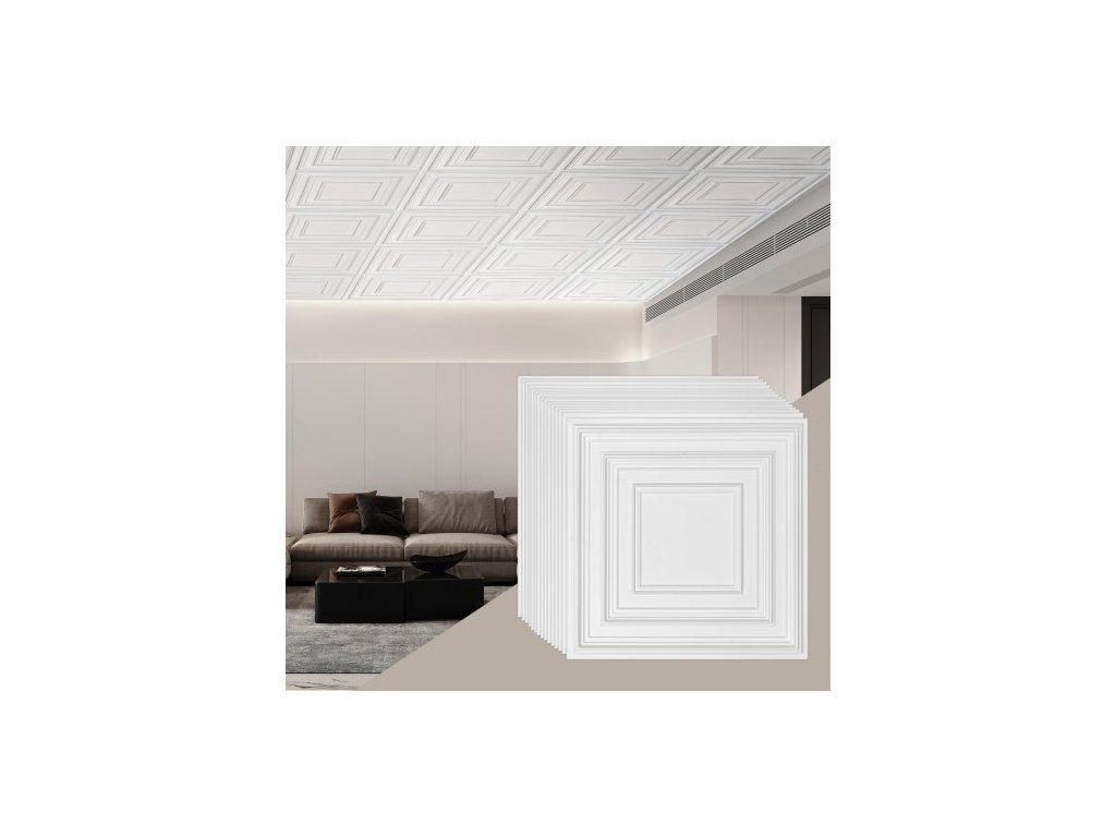 VEVOR Stropní dlaždice 12-balení 24 x 24 v PVC Snadná instalace Bílý kolíkový vzorDekorativní akustické