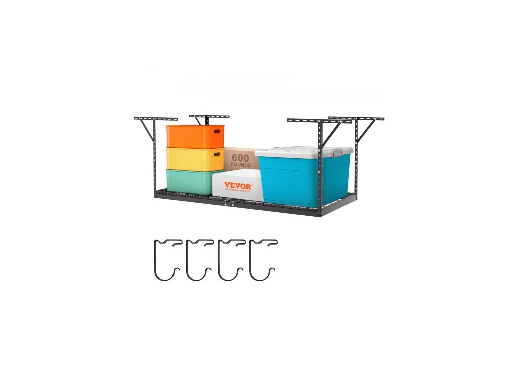 VEVOR Stropní garážový úložný stojan, 48x96 palců garážové stropní úložné stojany, nastavitelné ocelové stojany válcované za studena pro vysoké zatížení pro garážové skladování, organizace, nosnost 600 lb, 22''-40", černáPovrch pro práškové stříkání