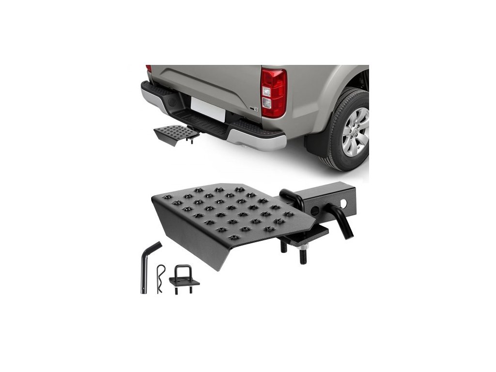 VEVOR stupínek pro tažné zařízení s 5cm přijímačem, univerzální ochranný kryt zadního nárazníku s nosností 159 kg, široký a protiskluzový stupínek pro tažné zařízení s čepy a stabilizátorem, vhodný pro nákladní automobily, SUV, pickupy a přívěsy