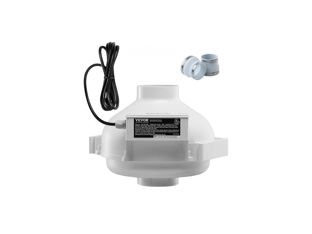 VEVOR Systém ventilátorů pro zmírnění radonu o průměru 4 až 4,5 palce, tichá sada pro zmírnění radonu o výkonu 260 CFM se 2 spojkami, vodotěsný ventilátor pro radon, elektrický potrubní ventilátor, odsávací ventilátor pro vnitřní a venkovní větráníTichý provoz