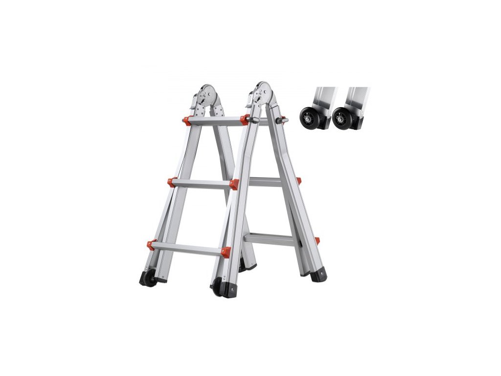 VEVOR Teleskopický žebřík s rámem A, 11 stop kompaktní hliníkový výsuvný žebřík, multifunkční přenosný skládací žebřík do obytného vozu, teleskopický žebřík pro domácí úkoly, schody do interiéru, exteriéru a střechy, nosnost 330 liberSilná nosnost