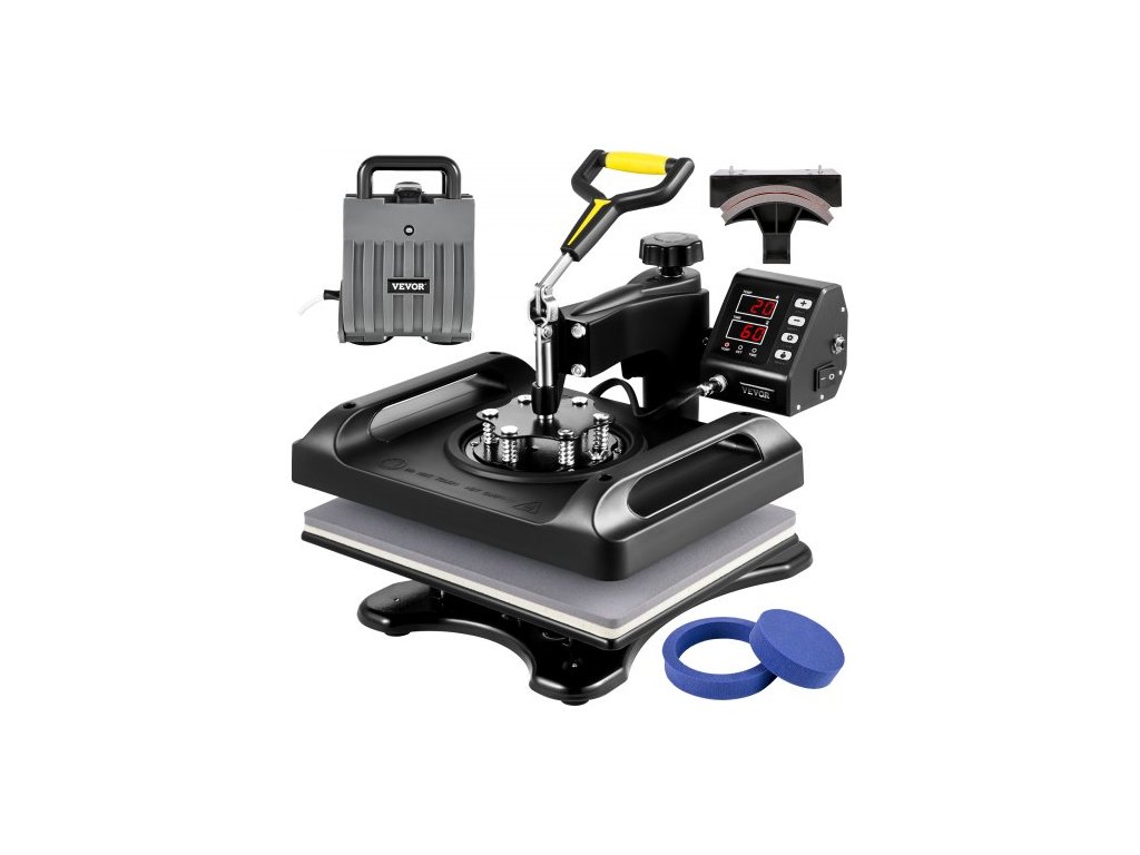 VEVOR termolis 12 x 15 palců 5 v 1 stroj na potisk triček s rotací 360°, výkyvný termolis 5 v 1, sublimační stroj 1000 W, dvojité topné trubice pro DIY tisk triček, hrnků, triček a čepicPřesný digitální displej