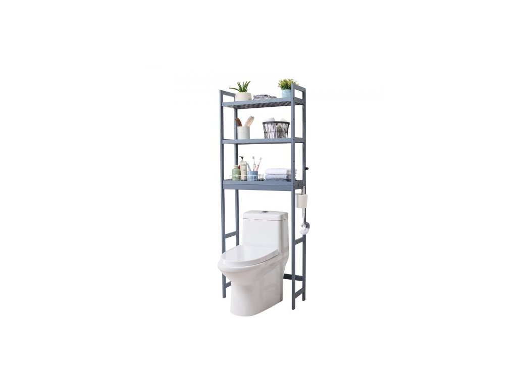 VEVOR Úložný prostor nad toaletu, 3úrovňový nastavitelný organizér do koupelny nad toaletu, bambusový úložný regál se 3 háčky, volně stojící, snadná montáž, úspora místa na prádlo, vhodný pro většinu toalet, šedý