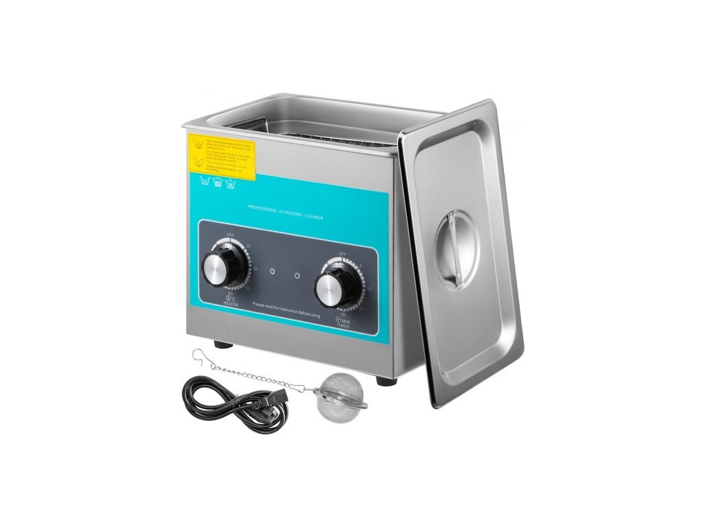 VEVOR ultrazvukový čistič s knoflíkovým ovládáním 3L 40kHz ultrazvukový čistič s knoflíkovým ovládáním sonický čistič z nerezové oceli 304 s ohřívačem a časovačem pro čištění šperků, brýlí, hodinekNerezová ocel 304