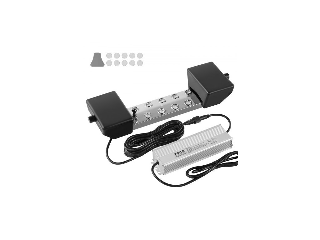 VEVOR ultrazvukový rozprašovač 10 hlavic, 7000 ml/h ultrazvukový rozprašovač, rozprašovač s 280W vodotěsným napájecím zdrojem IP67, bójí, náhradními disky, pro jezírko, zahradu, skalku, skleník, halloweenskou dekoraci