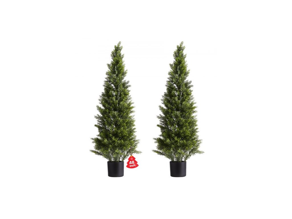 VEVOR Umělé keře z cedrů, 2 sady 1219 mm, umělé borovicové keře, rostliny, umělý hedvábný strom vypadá skutečně, snadná montáž pro dekoraci verandy, venkovní terasy, zahrady, balkonu, dvorku, vnitřní kanceláře