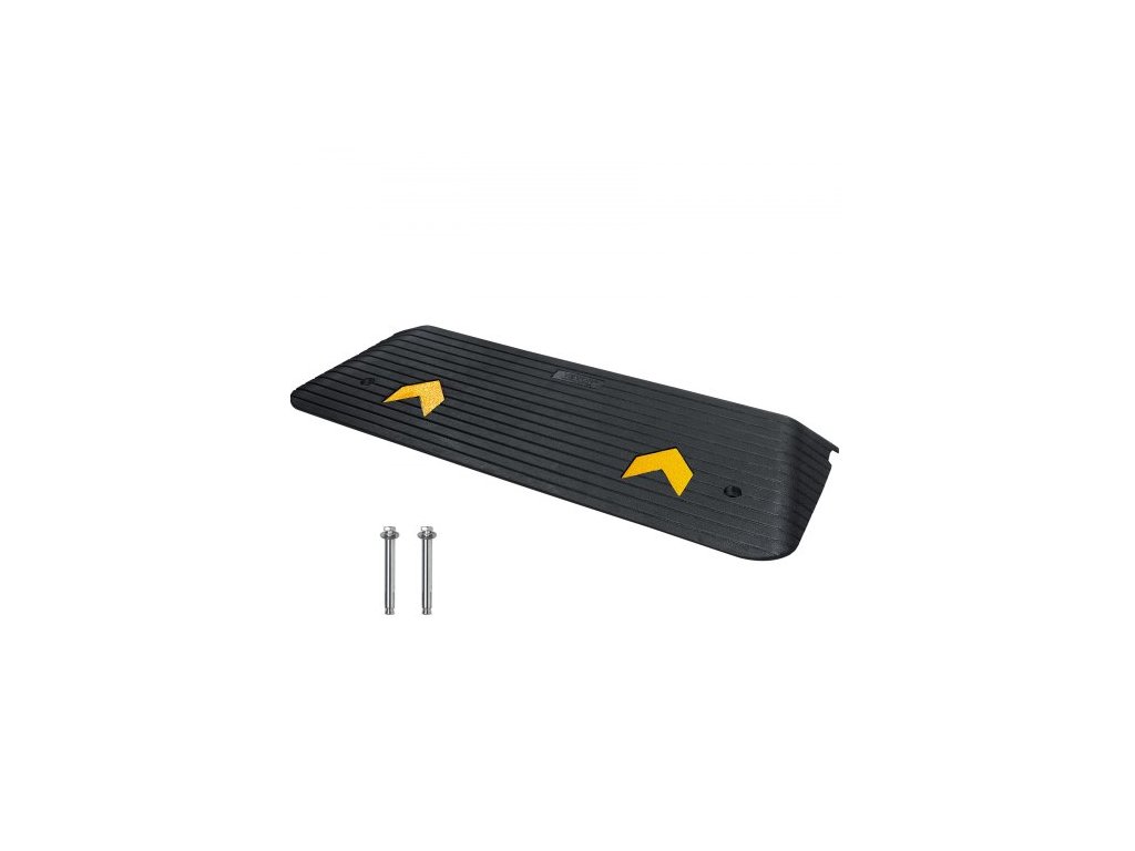 VEVOR Upgradovaná pryžová prahová rampa, 1,5" zvedací dveře rampy pro invalidní vozíky, přírodní obrubníková rampa Jmenovitá nosnost 33069 lb, protiskluzová pryžová rampa s texturovaným povrchem pro invalidní vozík a skútrTato obrubníková rampa se snadno umístí do drážek vozovky, což vašemu vozidlu umožní hladce projet hrbolatými úseky vozovky a vyhnout se poškození spodku vozidla nebo pneumatik způsobeným drážkami nebo rampami.