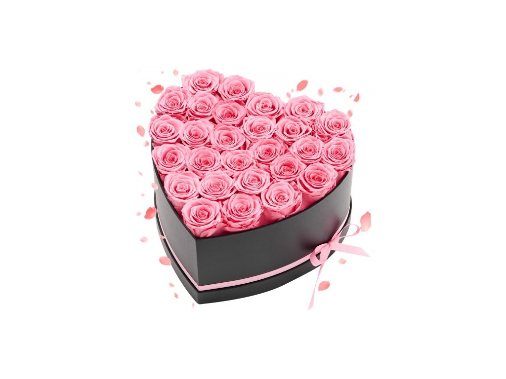 VEVOR Věčné květiny, 27 konzervovaných růží v krabičce ve tvaru srdce, věčné květiny, nesmrtelná kytice, dárek k narozeninám pro ženu, její manželku, matku, výročí, Valentýn, Vánoce, růžová