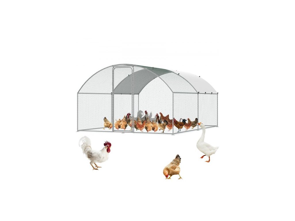 VEVOR Velký kovový kurník, 9,8x12,9x6,5 stop, výběh pro kuřata na zahradu s vodotěsným krytem, s střechou Doom a bezpečnostním zámkem pro venkovní použití a zahradu, farmu, klec pro kachny, králíky, drůbež.Robustní konstrukce