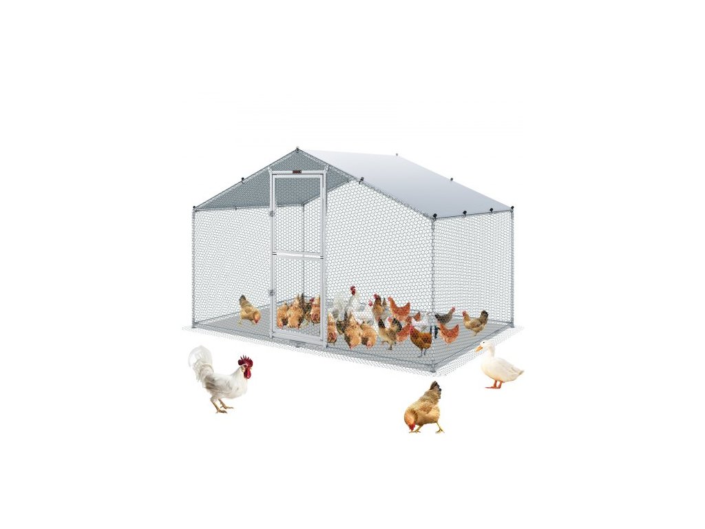 VEVOR Velký kovový kurník s výběhem, chodící kurník na zahradu s vodotěsným krytem, 6,6 x 9,8 x 6,6 stop, velká klec pro drůbež s vrcholovou střechou pro kurník, kachní kurník a králíčí výběh, stříbrnáPřipraveni na cokoli
