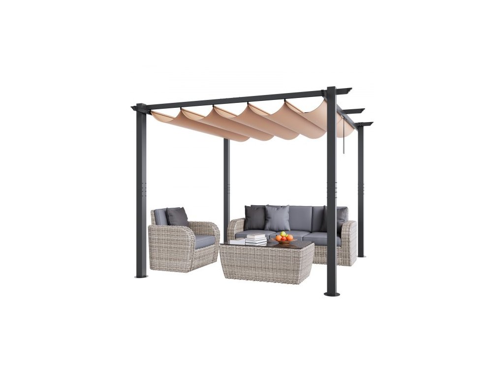 VEVOR Venkovní zatahovací pergola se stříškou 10'x10', hliníková pergola se zatahovací stříškou, moderní pergola se sluneční clonou pro terasy, zahrady, verandy, dvorky (béžová)