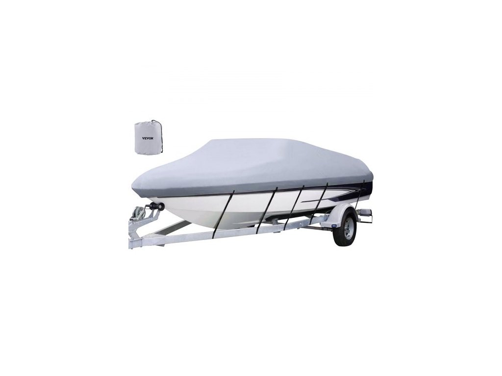 VEVOR Vodotěsný kryt člunu, 17'-19' přívěsný kryt člunu, šířka paprsku až 102" v Kryt trupu Heavy Duty 600D námořní třída polyesterový kryt pro kotvení pro člun V-Trup s 5 utahovacími popruhy210D 3vrstvý materiál