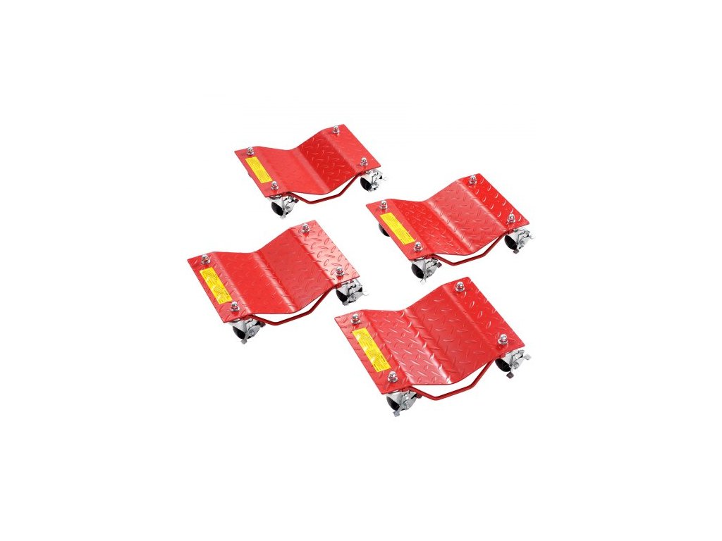 VEVOR Vozík na kola, nosnost 8000 liber, ocelový stěhovák, sada kolíků na pneumatiky s brzdami, vozík na přesun vozidel, nákladních automobilů, přívěsů, motocyklů a lodí, sada 4 kusů, červenáVylepšená kontrola mobility