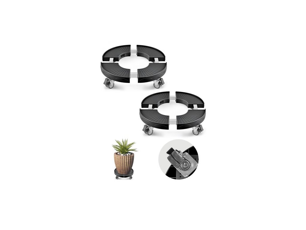 VEVOR vozík na odpadkové koše se 4 uzamykatelnými kolečky, nosnost 200 kg, 2 balení kulatých kolečkových podstavců na odpadkové koše, nastavitelný 38-57 cm, odolný vozík na rostliny, multifunkční vozík na kolečka, černýVysoce odolný přepravník rostlin