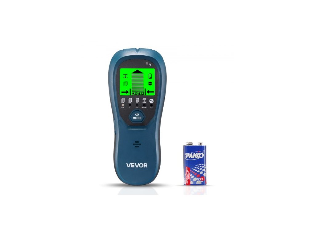 VEVOR Vyhledávač stěnových trámů, 5 v 1, elektronický detektor stěnových trámů s inteligentním senzorem, LCD displejem s vysokým rozlišením a zvukovým alarmem, pro střed a okraj kovu, AC dráty, trámy, trubky, modrý
