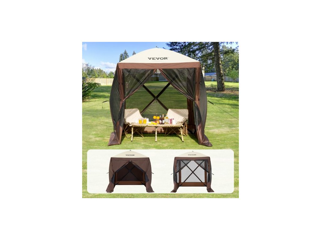 VEVOR Vyskakovací altán, Vyskakovací stan se stínítkem, 4stranná stříška, sluneční clona se 4 odnímatelnými látkami proti větru a síťovanými okny, 6x6 stop rychlomontážní stan s moskytiérou, hnědýProstorný kempingový altán s clonou