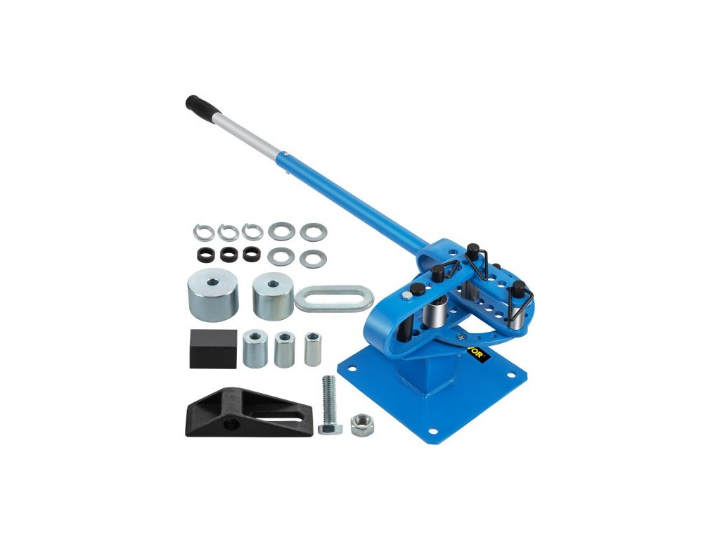 VEVOR YP-9 Manuální stolní ohýbačka trubek, kompaktní, 7 matric, ohýbačka trubek o průměru 1-3 palce, kovová konstrukce, trubková tyč, montáž 44 stop, práškově lakovaná teleskopická rukojeť, maximální tloušťka 5/8 palce, šířka 1-15/16 palceVysoká ohybová kapacita