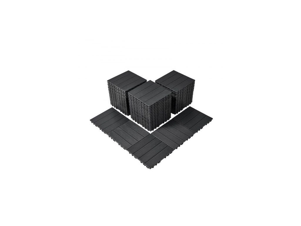 VEVOR Zámkové terasové dlaždice, balení 54 kusů, 12"x12", 54 čtverečních stop plastová vodotěsná venkovní podlaha, použití za každého počasí, dlažba na terasu, verandu, u bazénu, balkon, dvůr, tmavě šedá