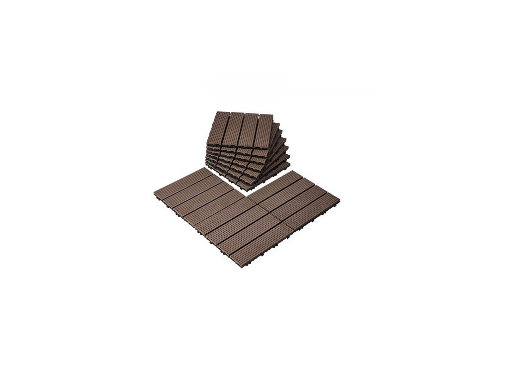 VEVOR Zámkové terasové dlaždice, plastové a dřevěné, balení 27 kusů, 12"x12", 27 čtverečních stop, vodotěsná venkovní podlaha, použití za každého počasí, dlažba na terasu, verandu, bazén, balkon, dvůr, tmavě hnědáFlexibilní DIY design