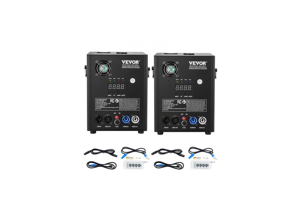 VEVOR zařízení pro studenou jiskru, 2 ks ovladačů ohňostrojů s výstupem 500 W, nastavitelná výška 6,6-13 stop, s pokročilým DMX systémem, LED obrazovkou, přenosnou rukojetí, hliníkovou slitinou pro pódiové DJ svatební akce, večírky