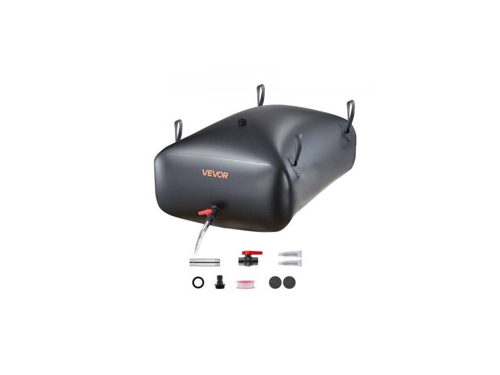 VEVOR Zásobní vak na vodu, přenosný a skládací vak na vodu o objemu 330 l, odolný proti opotřebení 1000D PVC měkký vak na vodu, nepropustný kempingový zásobník na vodu pro zavlažování zahrady v karavanu v nouzových situacích, černý