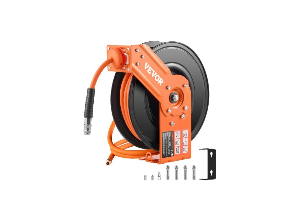 VEVOR Zatahovací naviják vzduchové hadice, hybridní vzduchová hadice 3/8 palce x 50 stop, max. 300 PSI, automatické navíjení navijáku hadice pro vzduchový kompresor s přívodem 5 stop, montáž na strop/na zeď, robustní jednoramenný naviják a otočný…