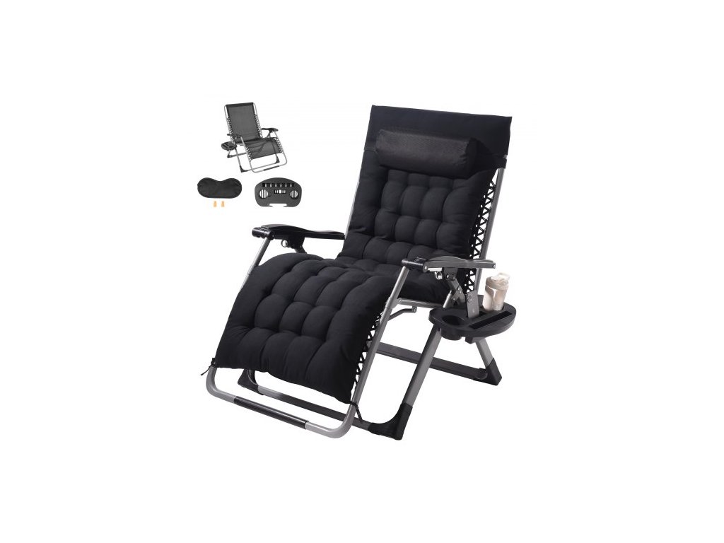 VEVOR Zero Gravity Chair, 33palcové křeslo s nulovou gravitací pro vnitřní i venkovní použití, nastavitelné antigravitační křeslo s polštářem, opěrkou hlavy, opěrkou nohou a držákem na nápoje, 500 liber, černé