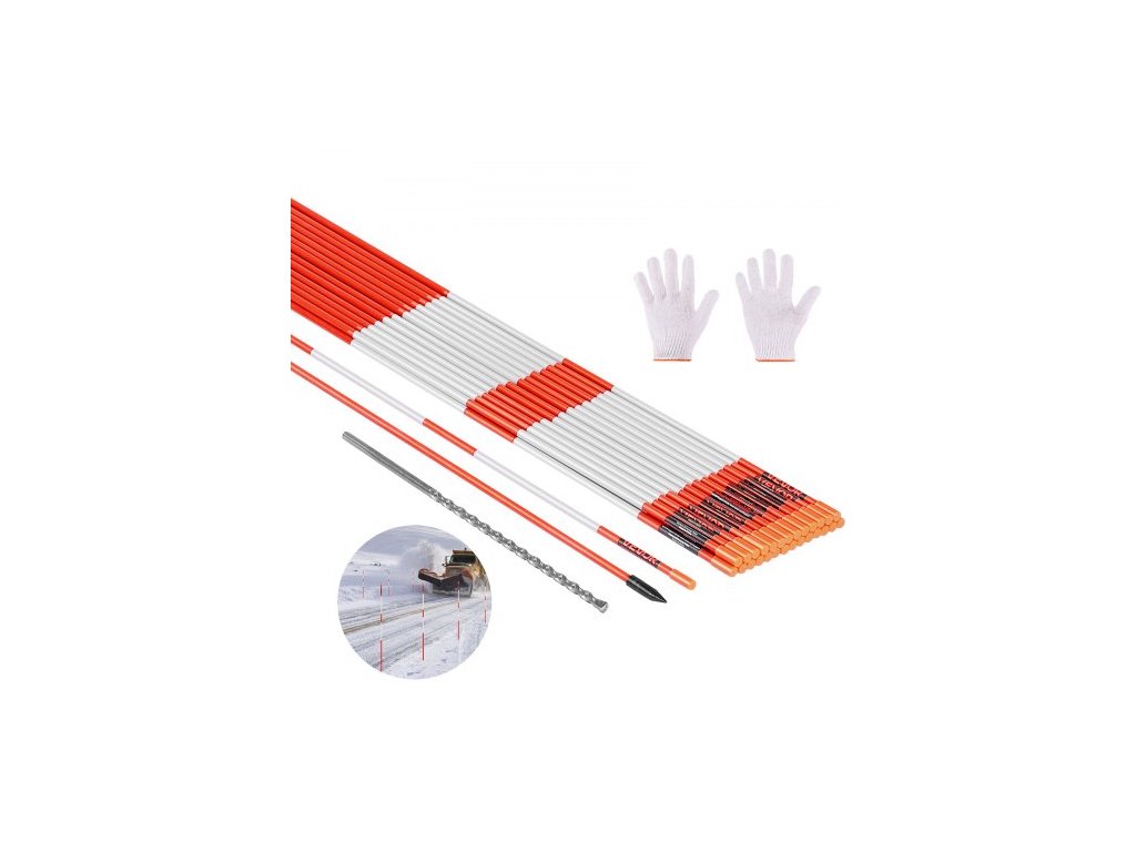 VEVOR Značky příjezdových cest, 20 ks, 122 cm dlouhé, průměr 6,35 mm, vysoce viditelné odrazky na příjezdovou cestu s 12palcovými ocelovými vrtáky, reflexní sněhové tyče, sklolaminátová tyč pro parkoviště, chodníky, odklízení sněhuVysoce flexibilní