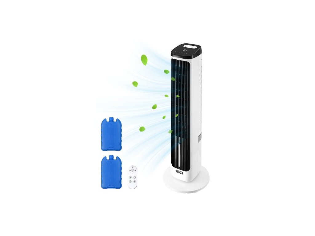 Věžový ventilátor VEVOR, rychlost 23,3 stop/s, tichý podlahový ventilátor, oscilační ventilátory 70° pro vnitřní použití s 9 rychlostmi, 4 režimy, 24hodinový časovač, přenosný stojanový ventilátor bez lopatek s dálkovým ovládáním pro ložnici, kancelář, domovDlouhý napájecí kabel