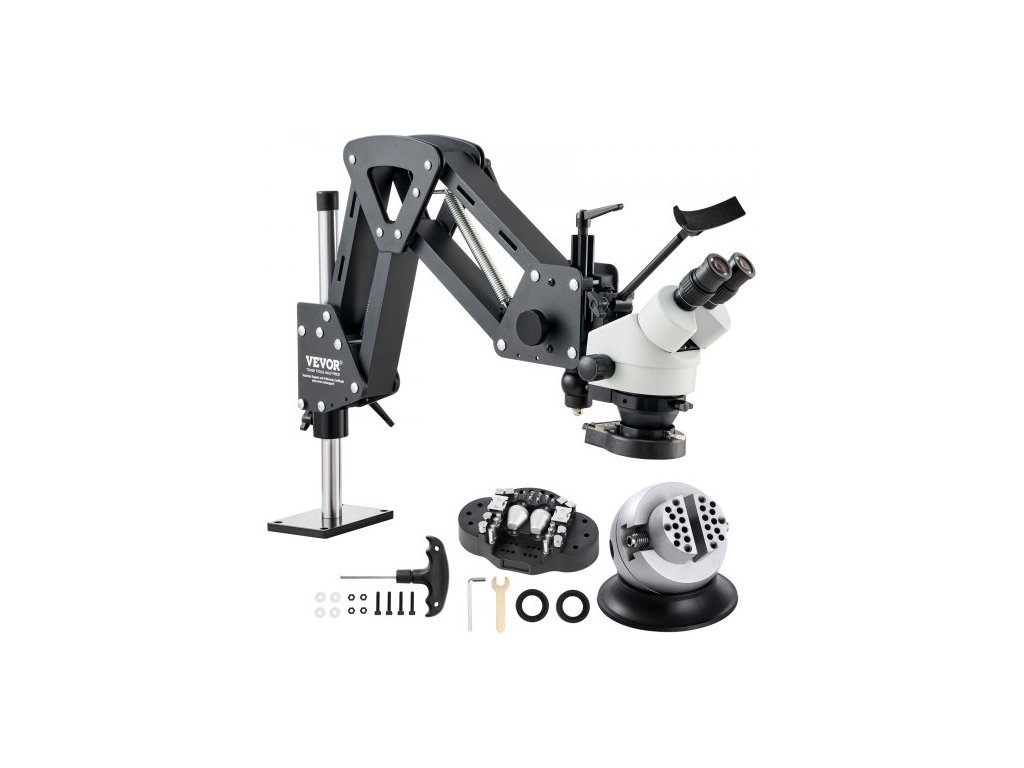 Vícesměrový mikroskop VEVOR s pružinovým držákem, zvětšení 7X-45X na šperky, mikrostojánek na šperky s integrovaným USB kroužkovým LED světlem a 360° kuličkovým svěrákem, pro vkládání šperkůŠiroce používané v intarzačním a řemeslném průmyslu