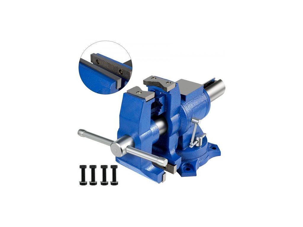 Víceúčelový svěrák VEVOR 6palcový stolní svěrák s otočnou základnou a hlavou s otočnou základnou a hlavou, robustní vícečelisťový svěrák pro upínání a upevňování zařízení, domácí i průmyslové použitíSamovyrovnávací čelisti pro trubky
