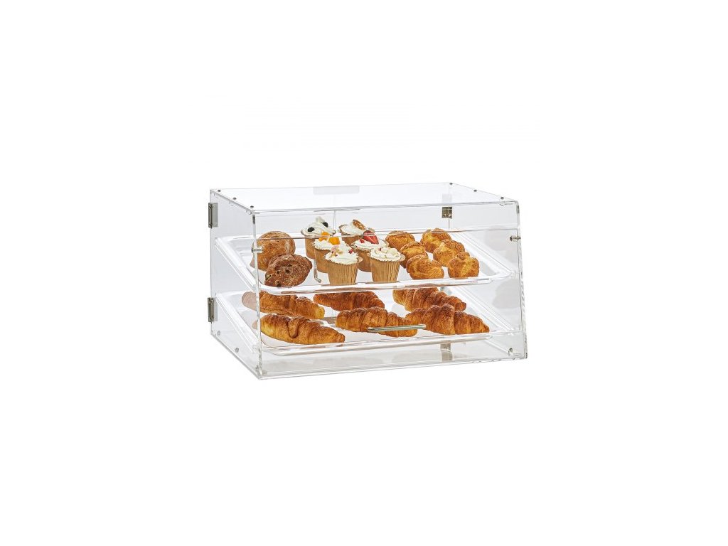 Vitrína na pečivo VEVOR, 2patrová komerční vitrína na pekařskou desku, akrylová vitrína s přístupem ze zadních dveří a odnímatelnými policemi, udržujte čerstvost pro donut Bagels Cake Cookie, 20,7" x 13,2" x 11,9Průhledný akrylový materiál
