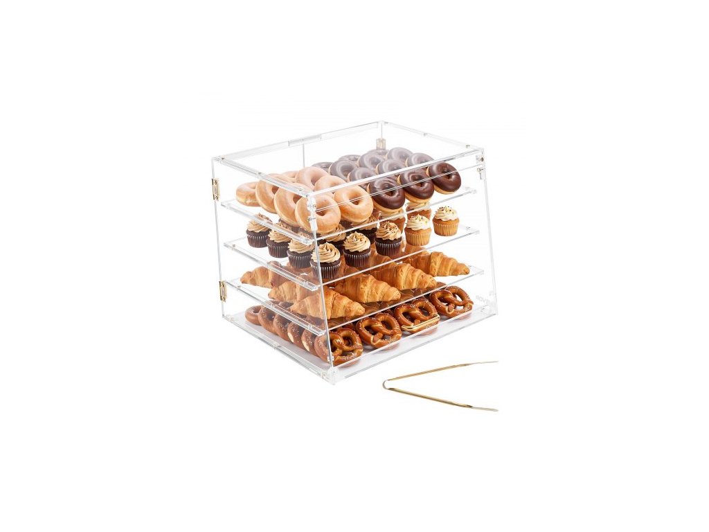 Vitrína na pečivo VEVOR, 4patrová komerční vitrína na pečivo, průhledná akrylová krabička na chlebník do kuchyně, vitrína na párty dorty s magnetickými zadními dvířky na sušenky, dezertní koblihy, 530x435x415 mmZrozeni k prezentaci dezertů