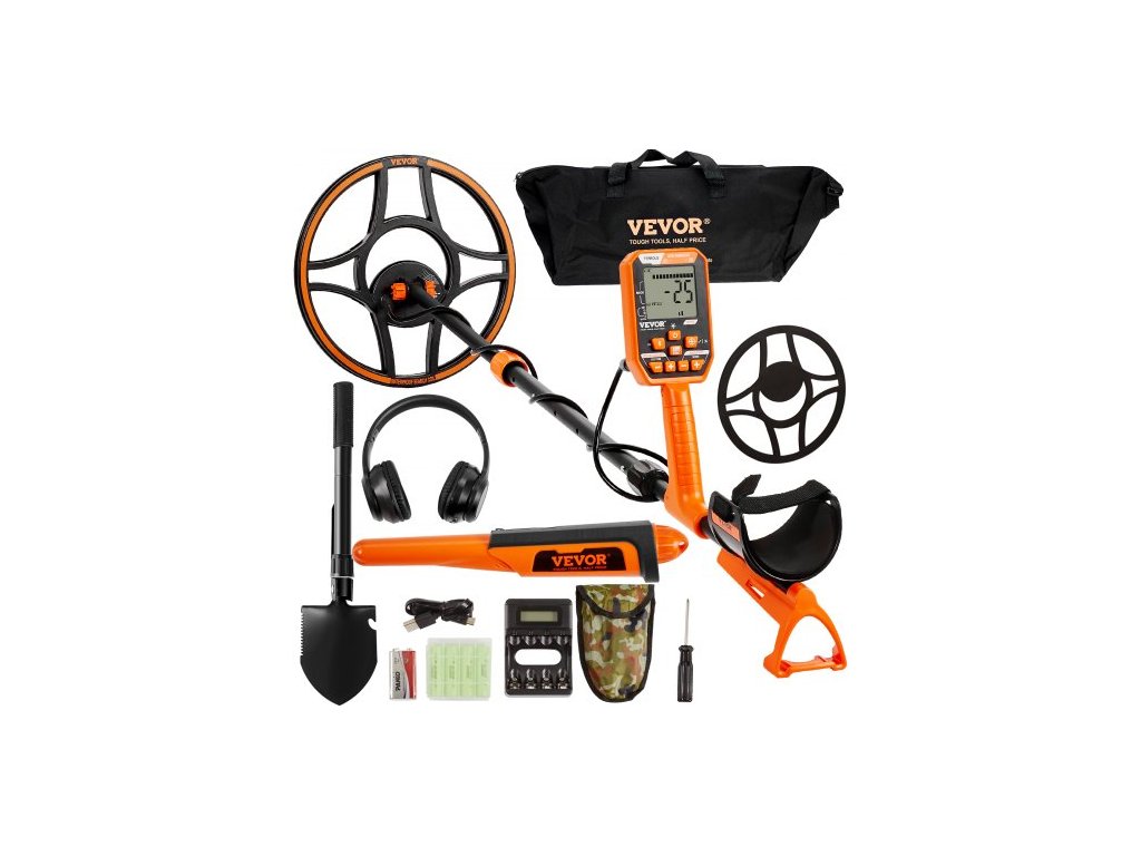 Voděodolný detektor kovů VEVOR, cívka 30,5 cm, profesionální dobíjecí detektor zlata, nastavitelný dosah 99-127 cm s LCD displejem, 7 režimů, pokročilý DSP čip, Bluetooth headset, IP68 pro detekci zlata a hledání pokladůOdolné a spolehlivé