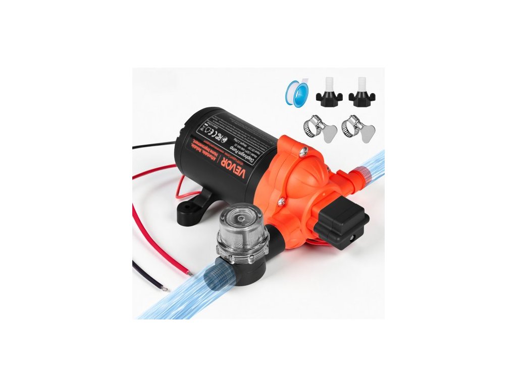Vodní čerpadlo VEVOR pro obytné vozy, 12 V DC 4 GPM (15,1 l/min), 3komorové samonasávací membránové vodní čerpadlo s automatickým tlakovým spínačem, maximální tlak 40 PSI, na vyžádání pro obytné vozy, karavany, lodě, jachty a mytí autPrůmyslové těleso čerpadla