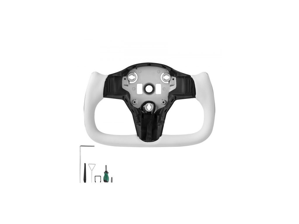 Volant VEVOR pro Tesla Model 3 2016-2023, volant z uhlíkových vláken ve tvaru D s plochou spodní částí a vyhříváním, kožená rukojeť s protiskluzovou texturou, náhradní příslušenství pro Model 3, bílá