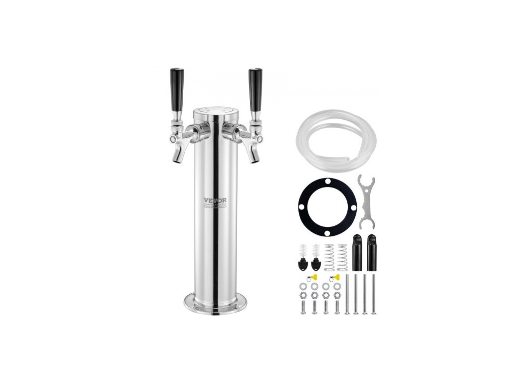 Výčepní věž VEVOR s dvojitými kohouty, věž z nerezového sudu, sada věže Kegerator s předem smontovanými trubkami a samouzavíracími rameny kohoutku pro párty, bar, hospodu, restauraciUchovávejte si čerstvost, vychutnejte si každou chuť