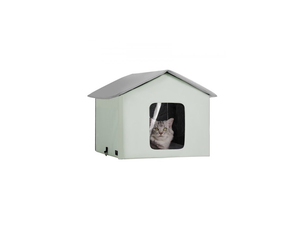 Vyhřívaný kočičí domek VEVOR, venkovní přístřešek pro kočky s nastavitelnou teplotou a časovačem, skládací kočičí přístřešek z oxfordské látky 600D s vyhřívanou podložkou na zimu pro teplo a útulno, zelený (střední)
