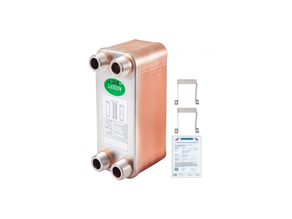 Výměník tepla VEVOR s porty 3/4” MNPT Pájený deskový výměník tepla 30 deskový výměník tepla deskový výměník z nerezové oceli 316L plochý deskový výměník tepla deskový chladič mladiny pro hydronické vytápění