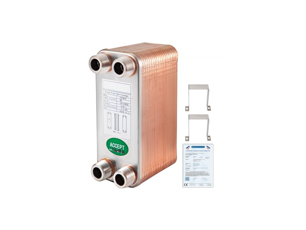 Konstrukční tlak (max.): 3,0 MPa, Zkušební tlak: (min.): 4,5 MPa, Návrhová teplota (℃): Min. -196,Model: EATB12, Rozměry: 7,6" x 2,7" x 4,6" / 19,4 cm x 7,1 cm x 11,8 cm, Množství talířů: 40, Materiál: 316L +99,9% měď, Porty: 3/4" MNPT