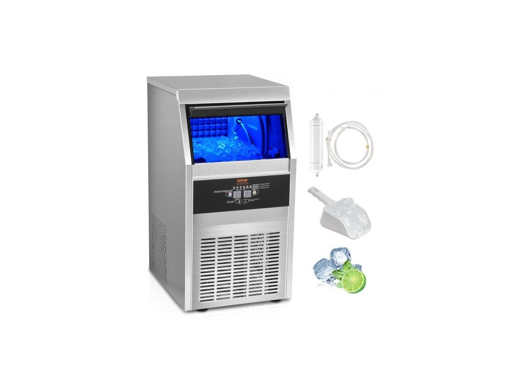 Výrobník ledu VEVOR pro komerční účely, 80 liber/24 hodin, výrobník ledu, 40 kostek ledu za 12–15 minut, volně stojící výrobník ledu do skříňky s úložnou kapacitou 24 liber, LED digitální displej, pro bar, domácí kancelář, restauraciLehký komerční výrobník ledu