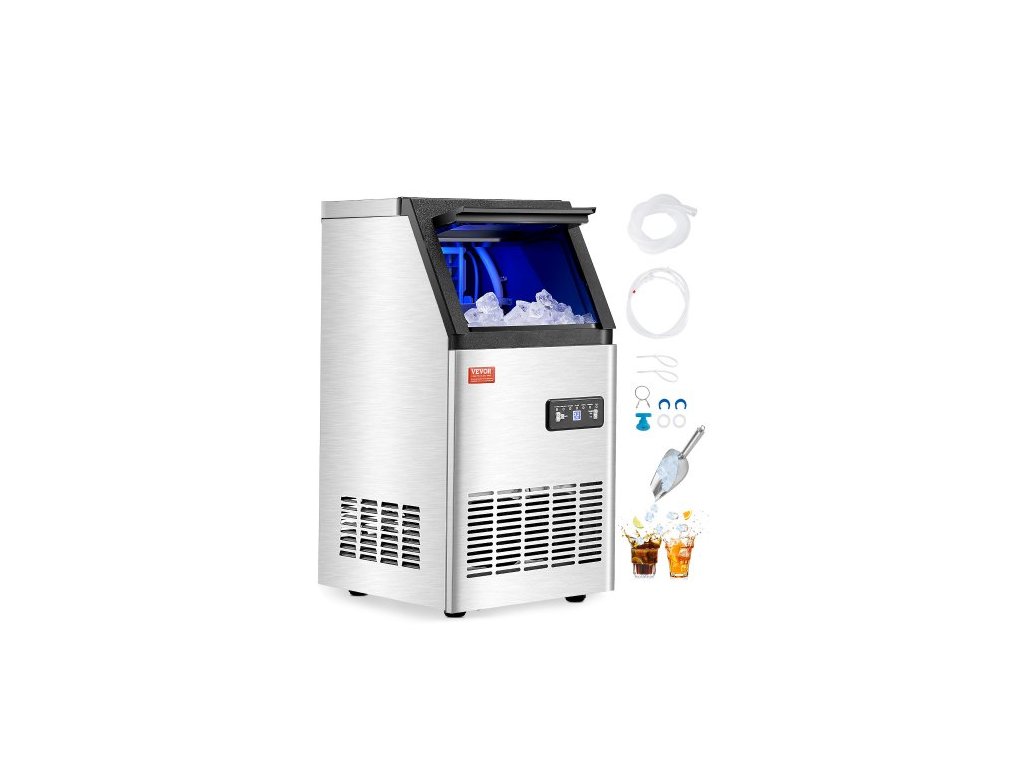 Výrobník ledu VEVOR pro komerční účely, výrobník ledu 100 liber/24 hodin s úložnou kapacitou 16 liber, 36 kostek ledu za 15 minut, LED digitální displej, volně stojící, samočisticí, pro bar, kancelář, restauraciVěšák na naběračky na led