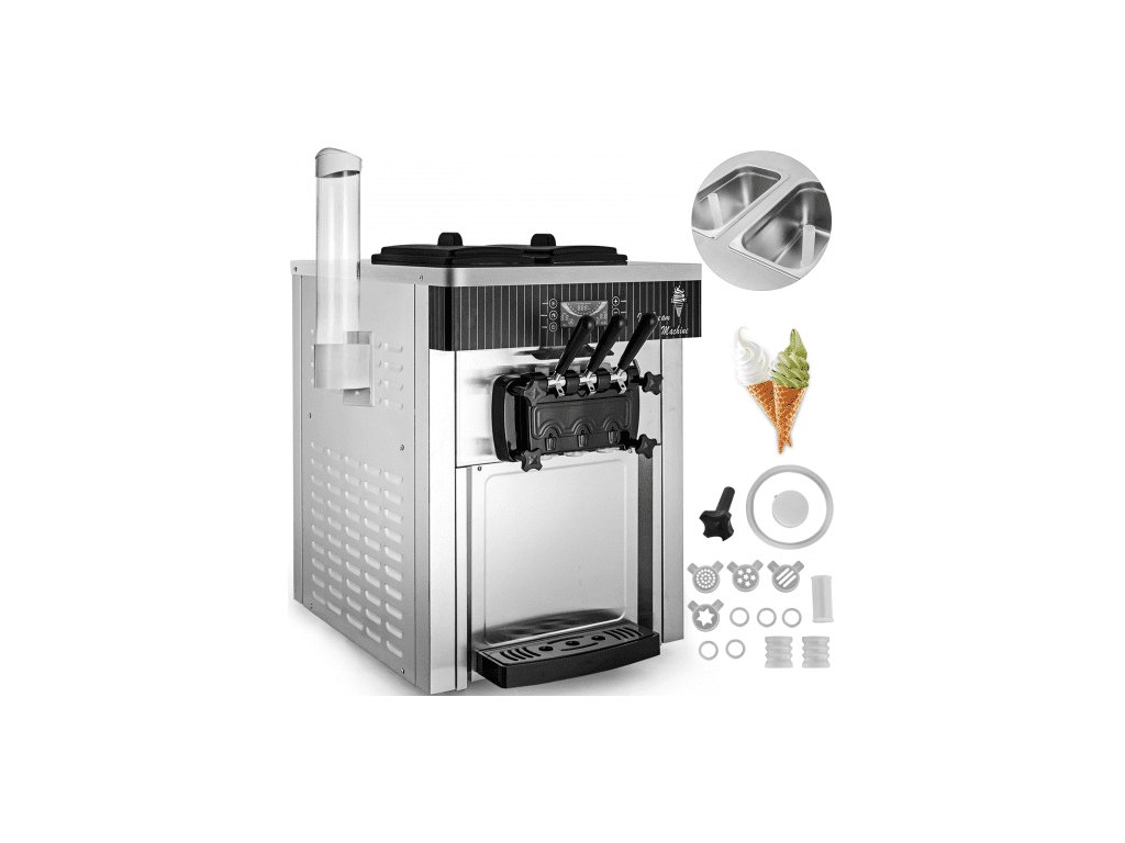 Výrobník měkké zmrzliny VEVOR, 2200W, profesionální stolní výrobník měkké zmrzliny, 5,3 až 7,4 galonů za hodinu, výrobník zmrzliny pro restaurace, bary, kavárny, pekárny