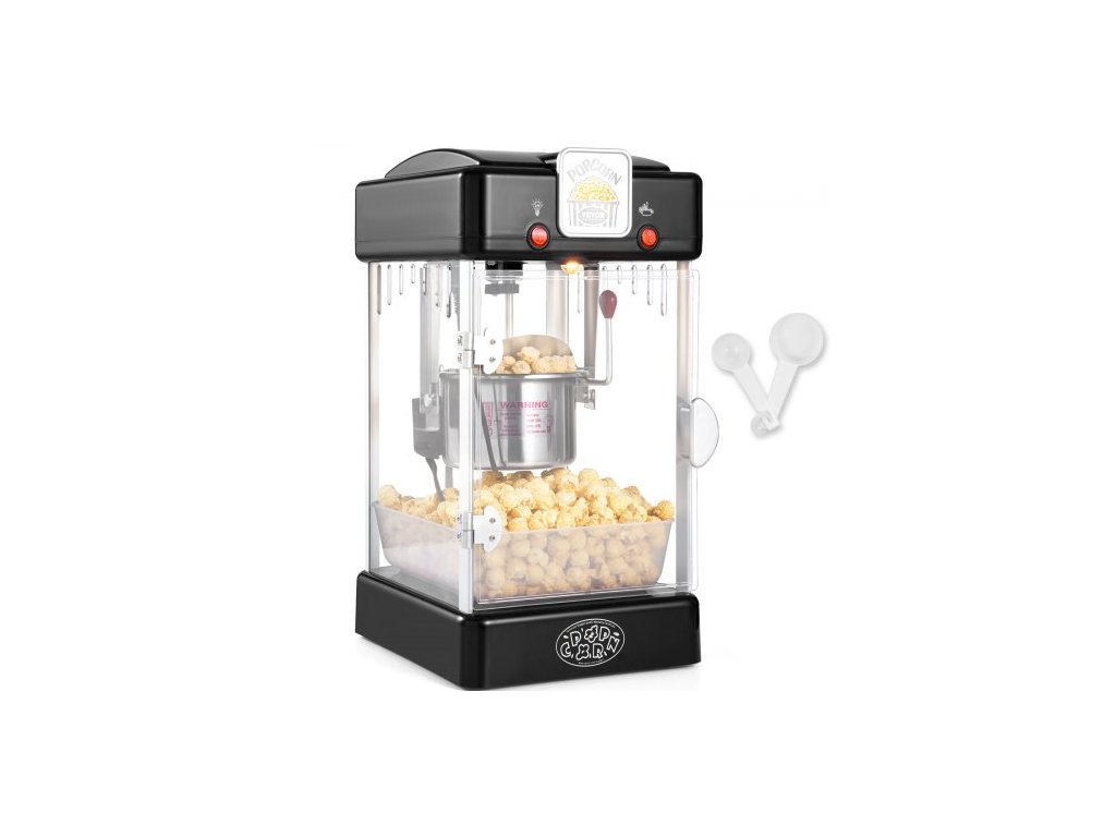 Výrobník popcornu VEVOR, 300W stroj na popcorn, konvice o objemu 2,5 oz, vyrobí 4 qt na dávku, stolní výrobník popcornu s PP dvířky, obsahuje 2 odměrky a tác, styl kina, černýSkvělý zážitek