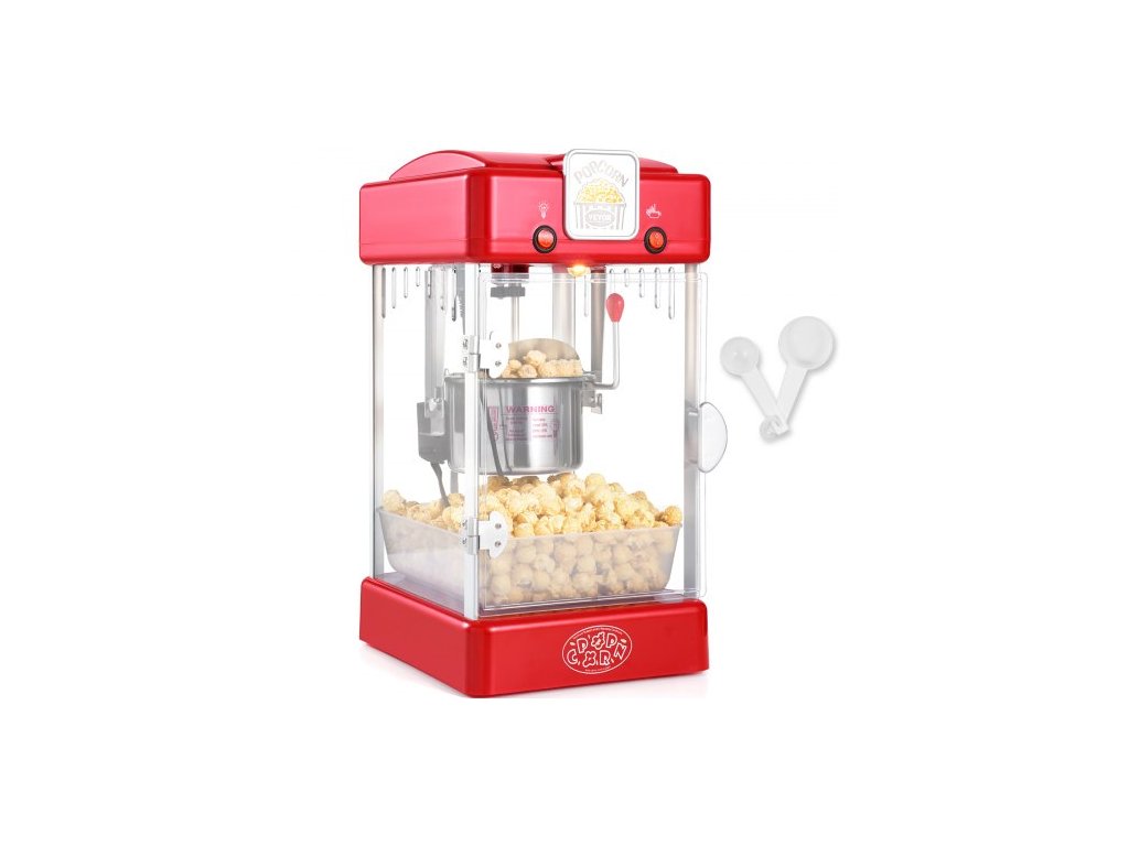 Výrobník popcornu VEVOR, 300W stroj na popcorn, konvice o objemu 2,5 oz, vyrobí 4 qt na dávku, stolní výrobník popcornu s PP dvířky, obsahuje 2 odměrky a tác, styl kina, červenýSkvělý zážitek